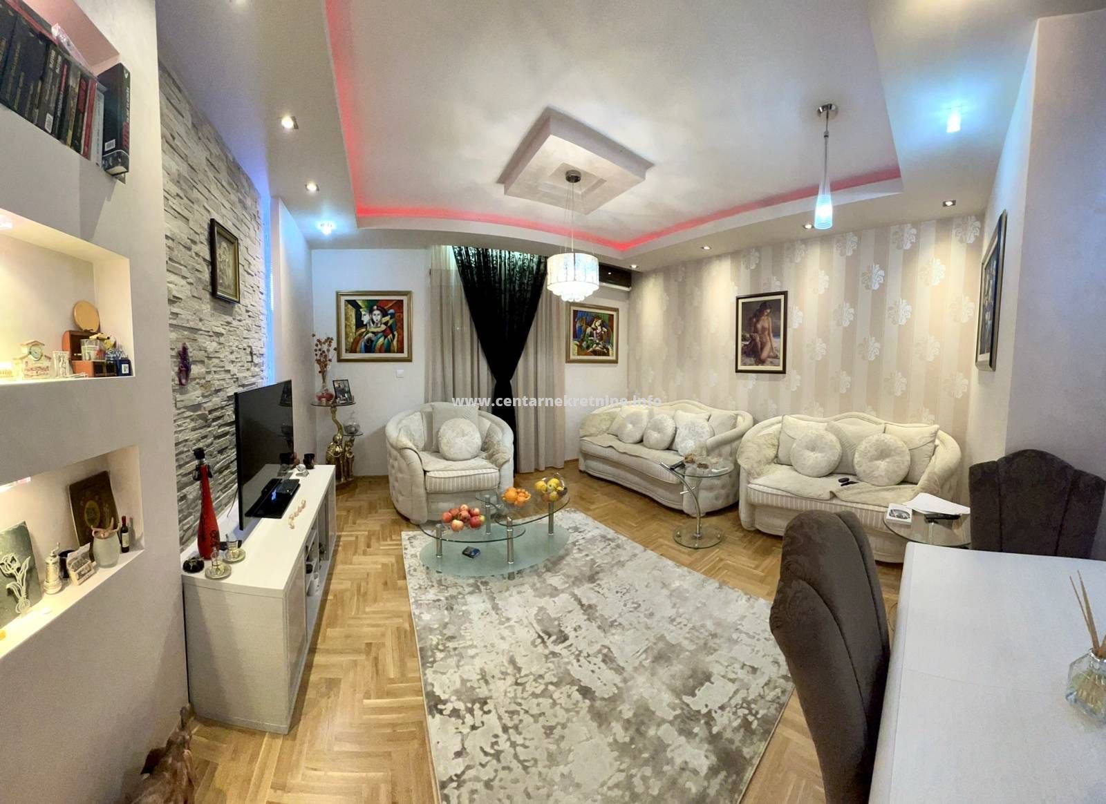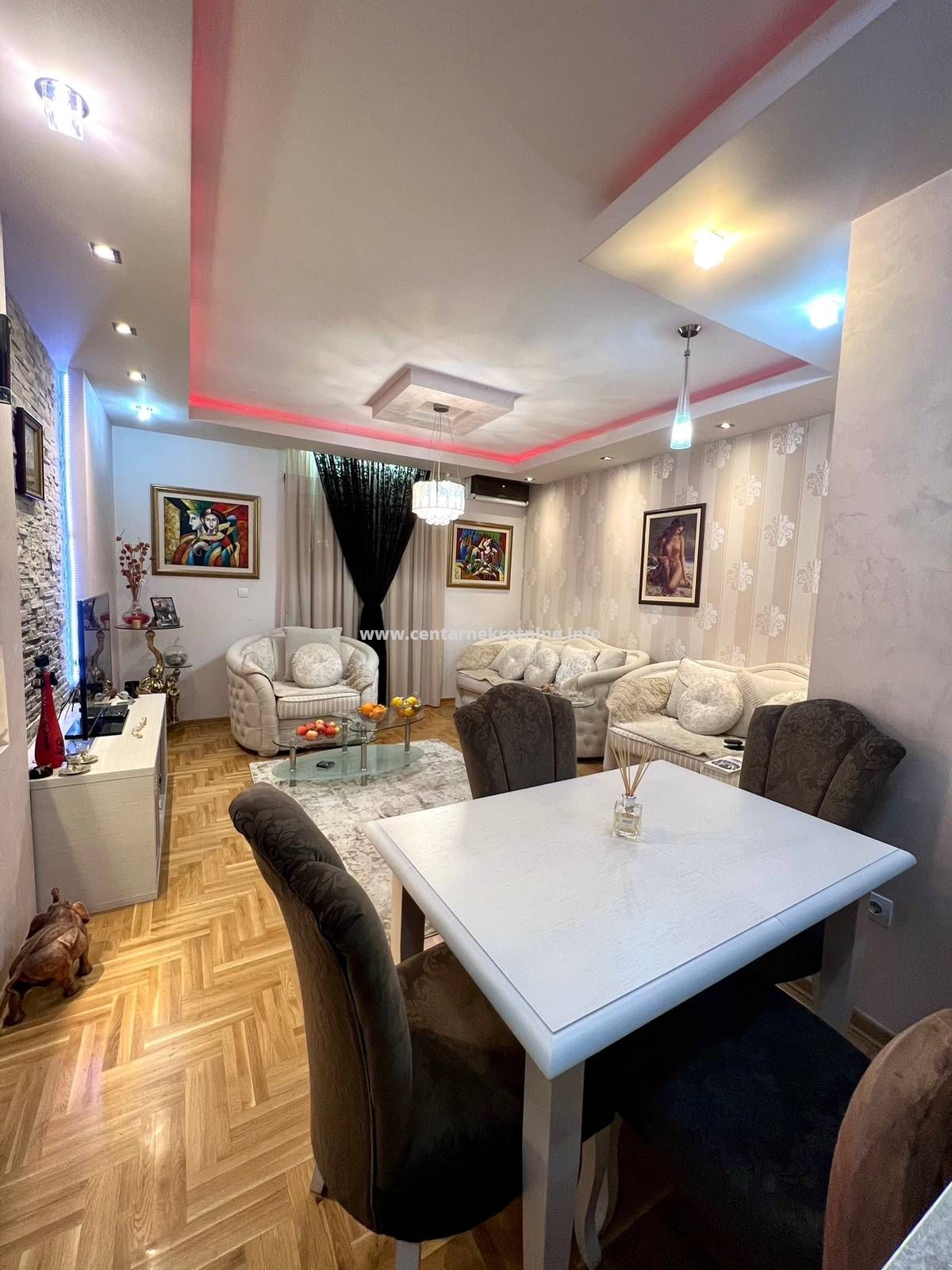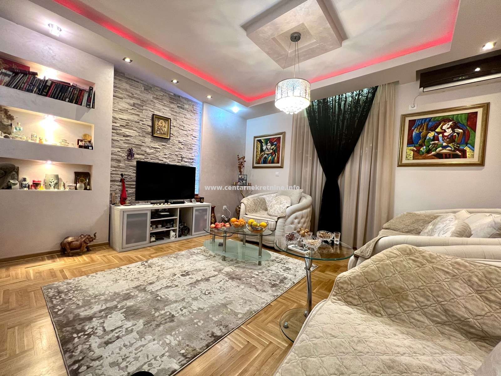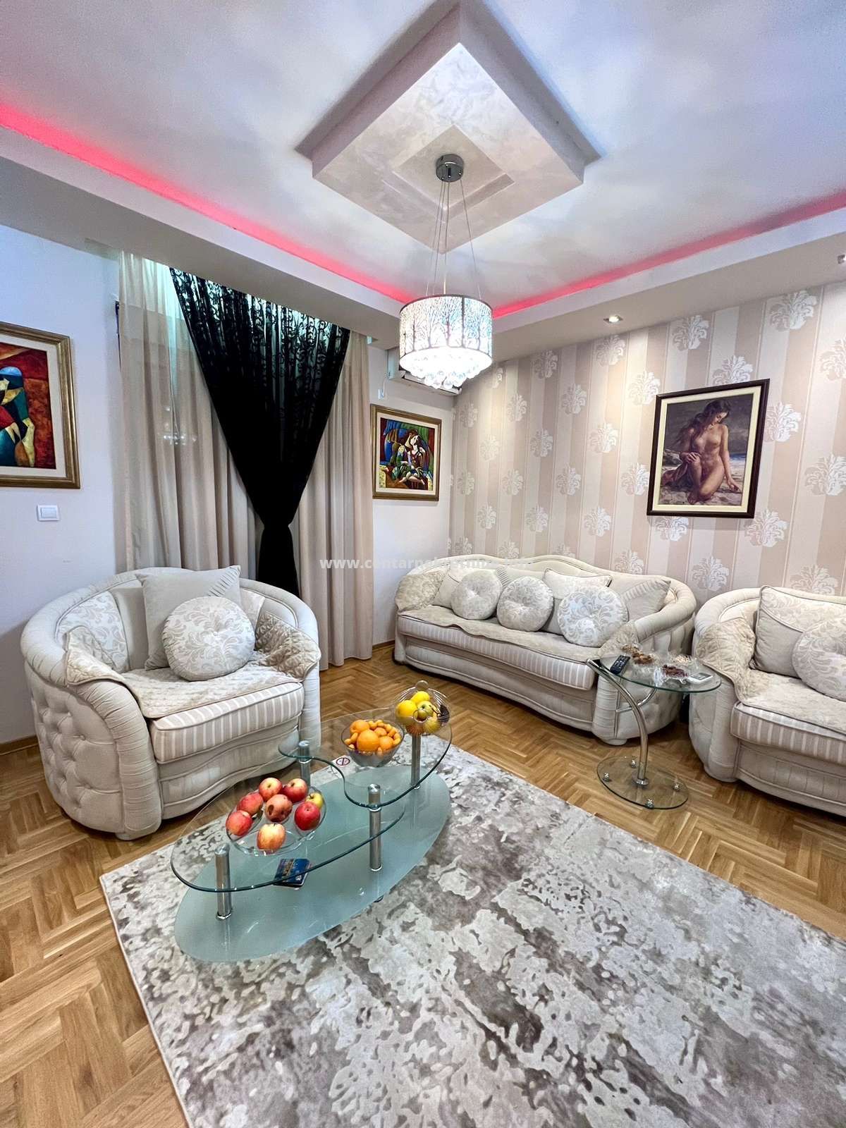 ID - 6129Izdaje se luksuzan, kompletno namjesten jednosoban stan u mjestu Lazi u Budvi, iznad Parme. Stan je povrsine 56m2, nalazi se na I spratu. Sastoji se od hodnika, dnevne sobe sa trpezarijom, kuhinje, spavace sobe, kupatila i terase.