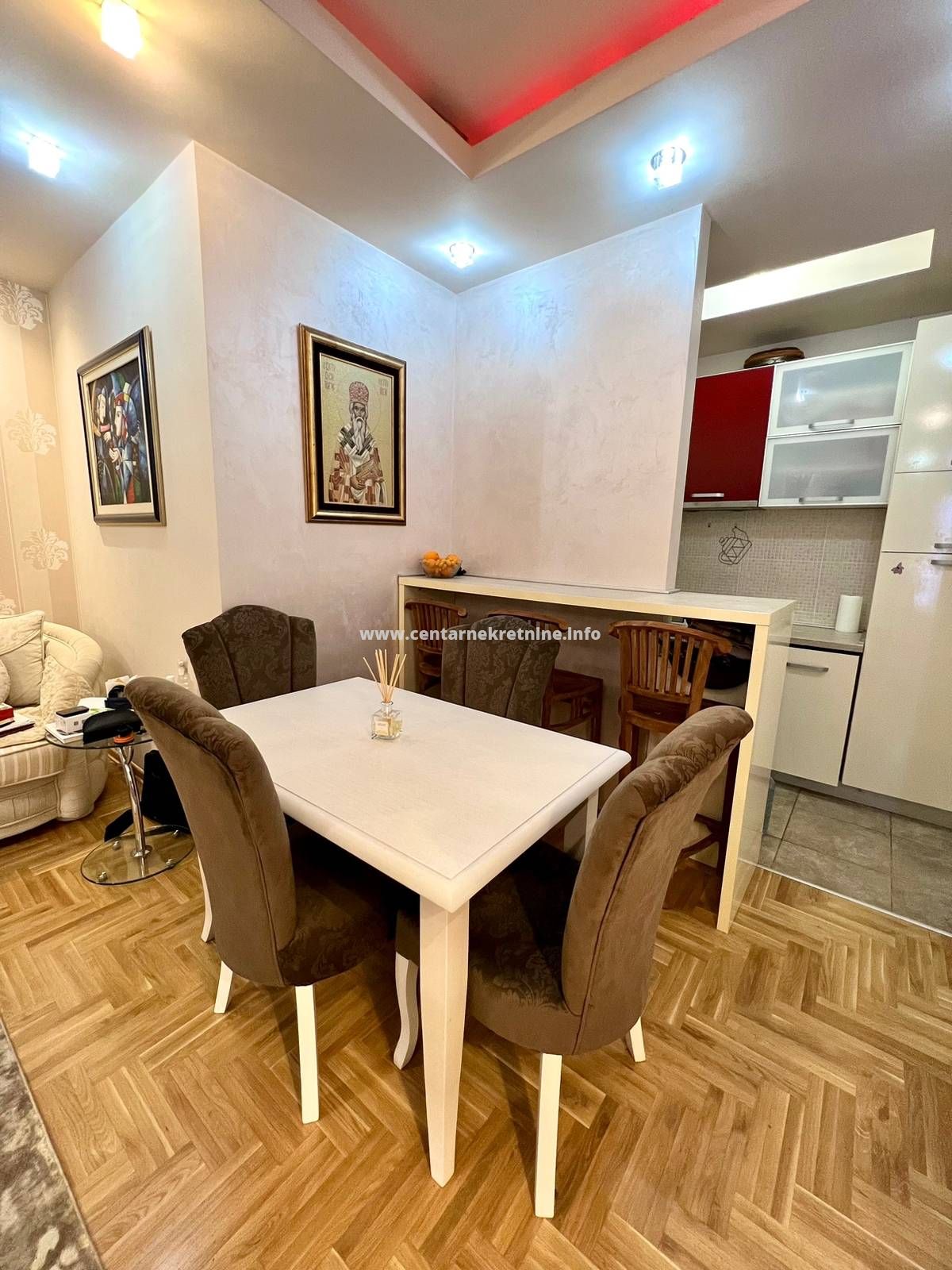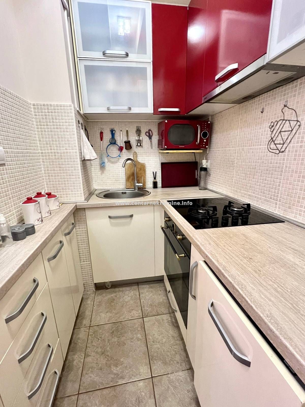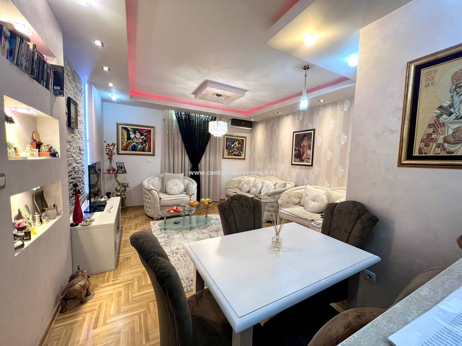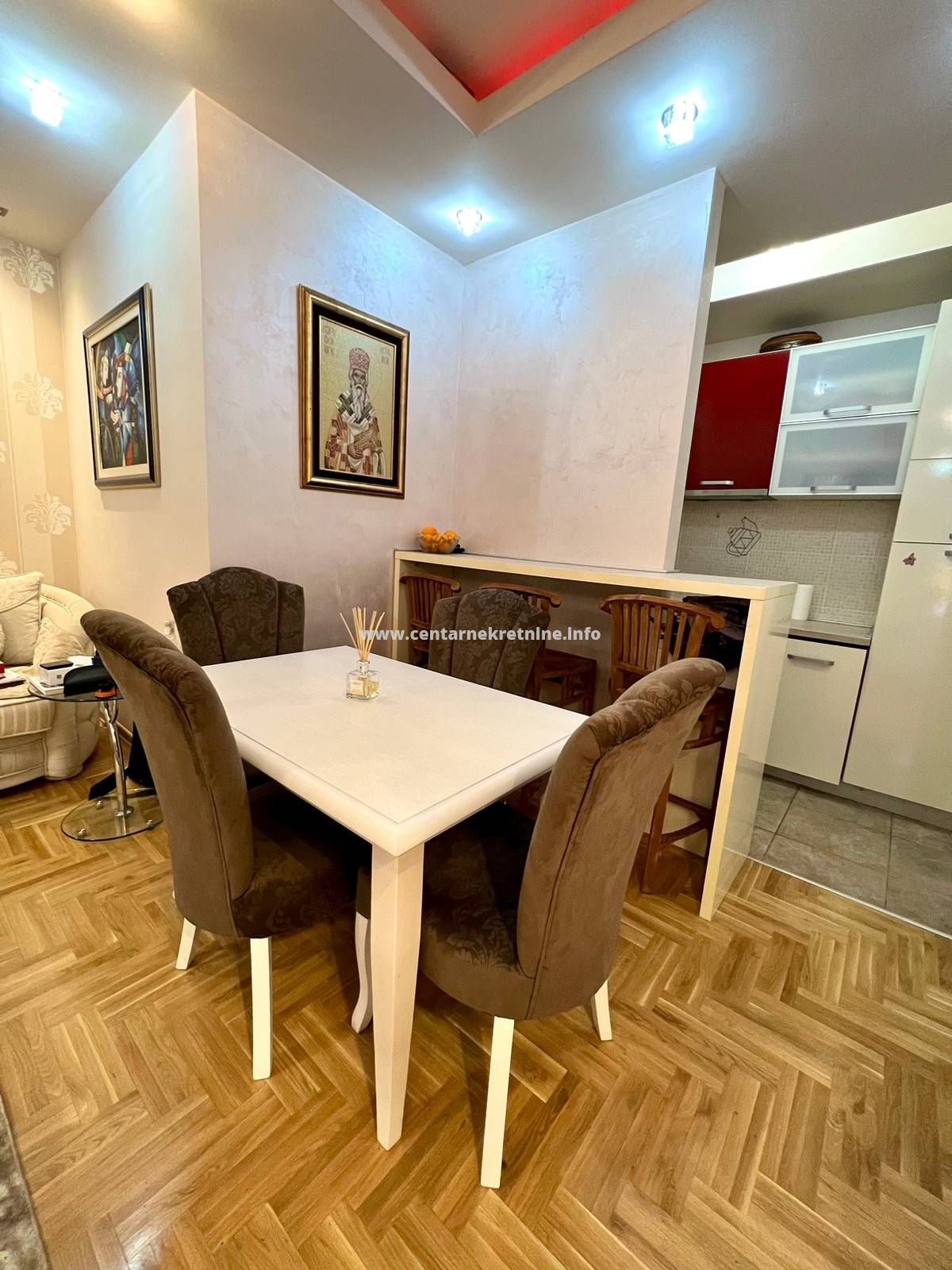 ID - 6129Izdaje se luksuzan, kompletno namjesten jednosoban stan u mjestu Lazi u Budvi, iznad Parme. Stan je povrsine 56m2, nalazi se na I spratu. Sastoji se od hodnika, dnevne sobe sa trpezarijom, kuhinje, spavace sobe, kupatila i terase.