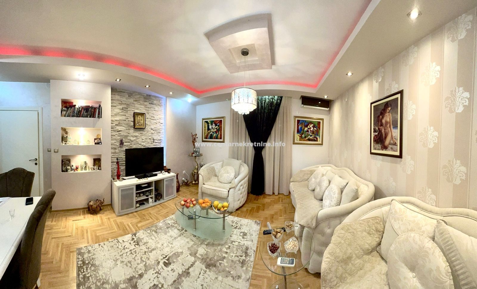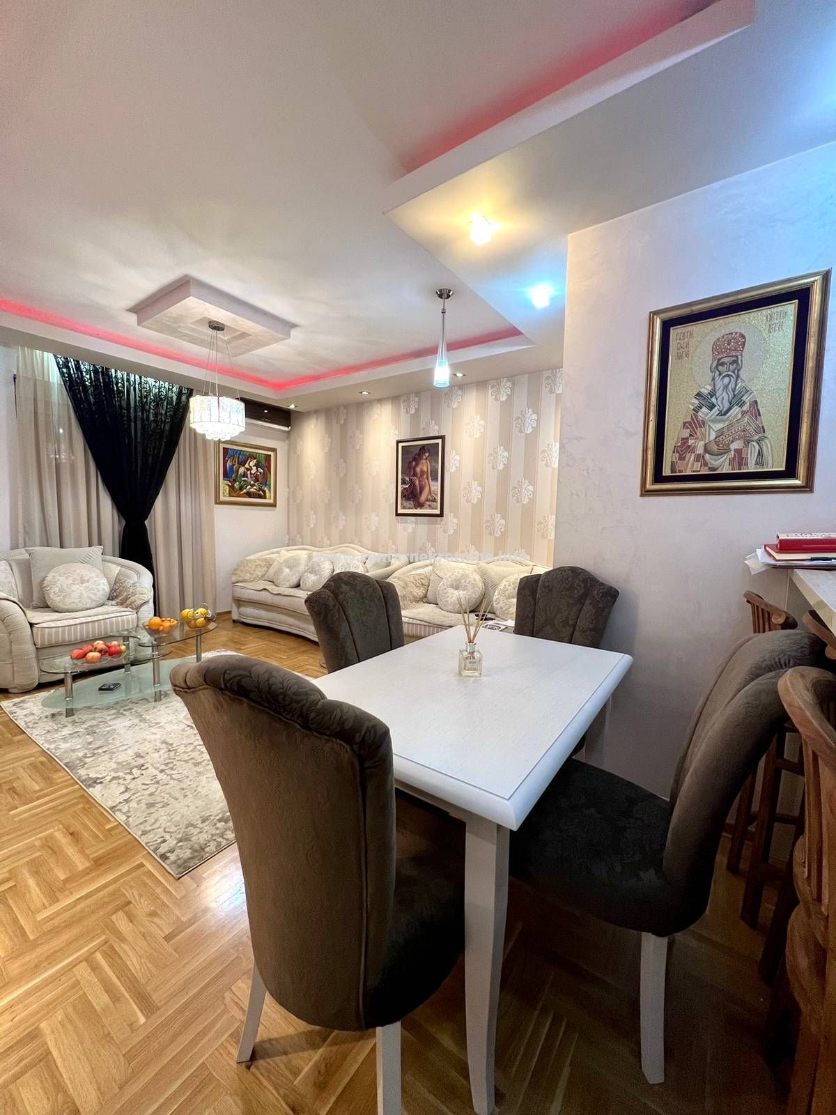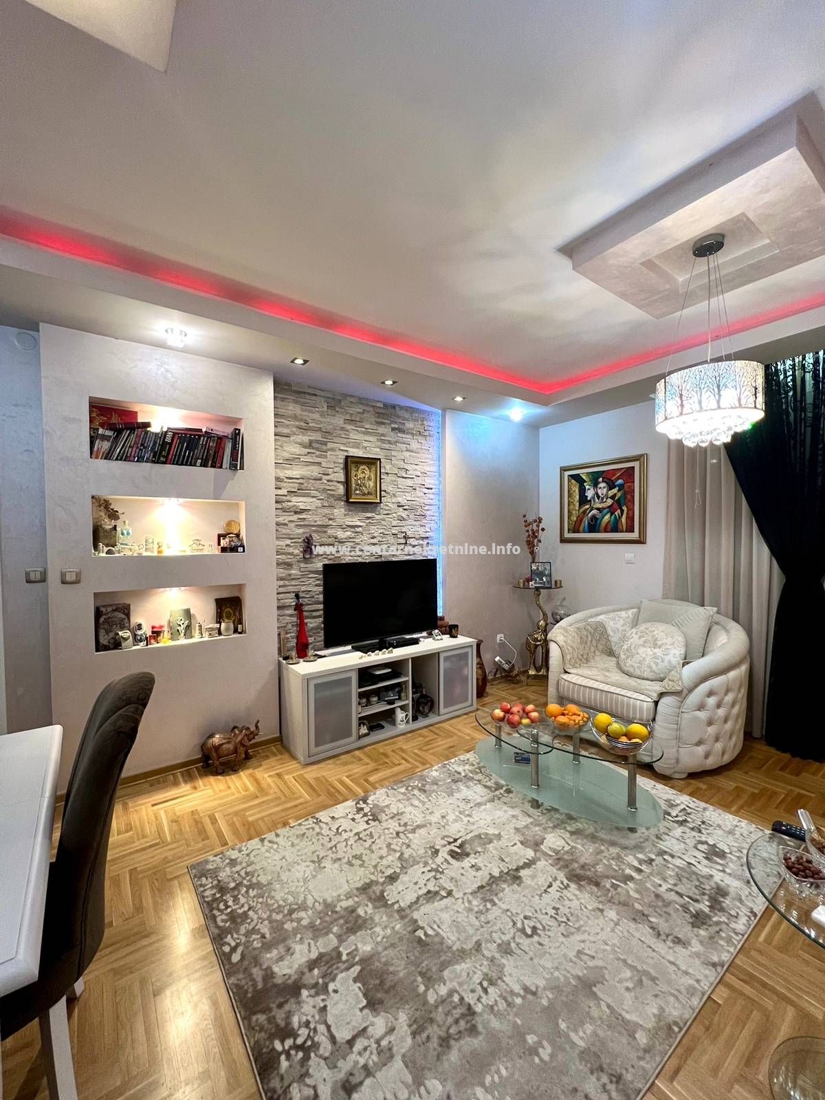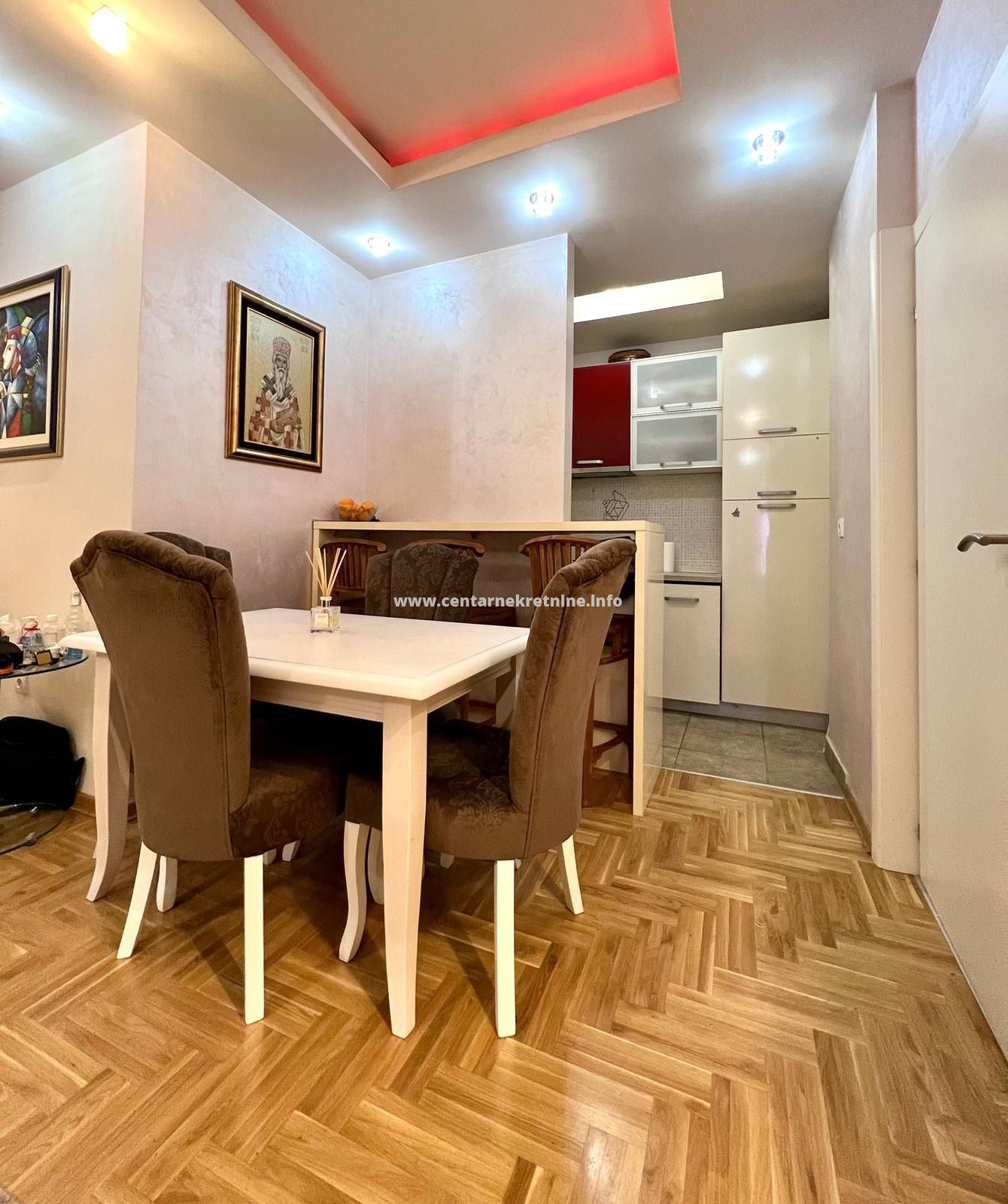 ID - 6129Izdaje se luksuzan, kompletno namjesten jednosoban stan u mjestu Lazi u Budvi, iznad Parme. Stan je povrsine 56m2, nalazi se na I spratu. Sastoji se od hodnika, dnevne sobe sa trpezarijom, kuhinje, spavace sobe, kupatila i terase.