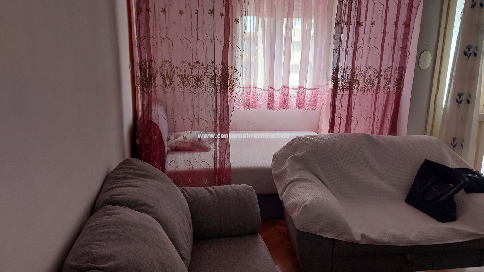 Izdaje se kompletno namjestena, prostrana garsonjera u ulici 4. jula na Pobrezju, povrsine 40m2, na V spratu. U stanu ima izdvojen dio sa novim komfornim ležajem. U dnevnom boravku je garnitura, trosjed koji se razvlači u ležaj, dvosjed i fotelja. posjeduje i veliki plakar. Ispred zgrade je veliki parking.