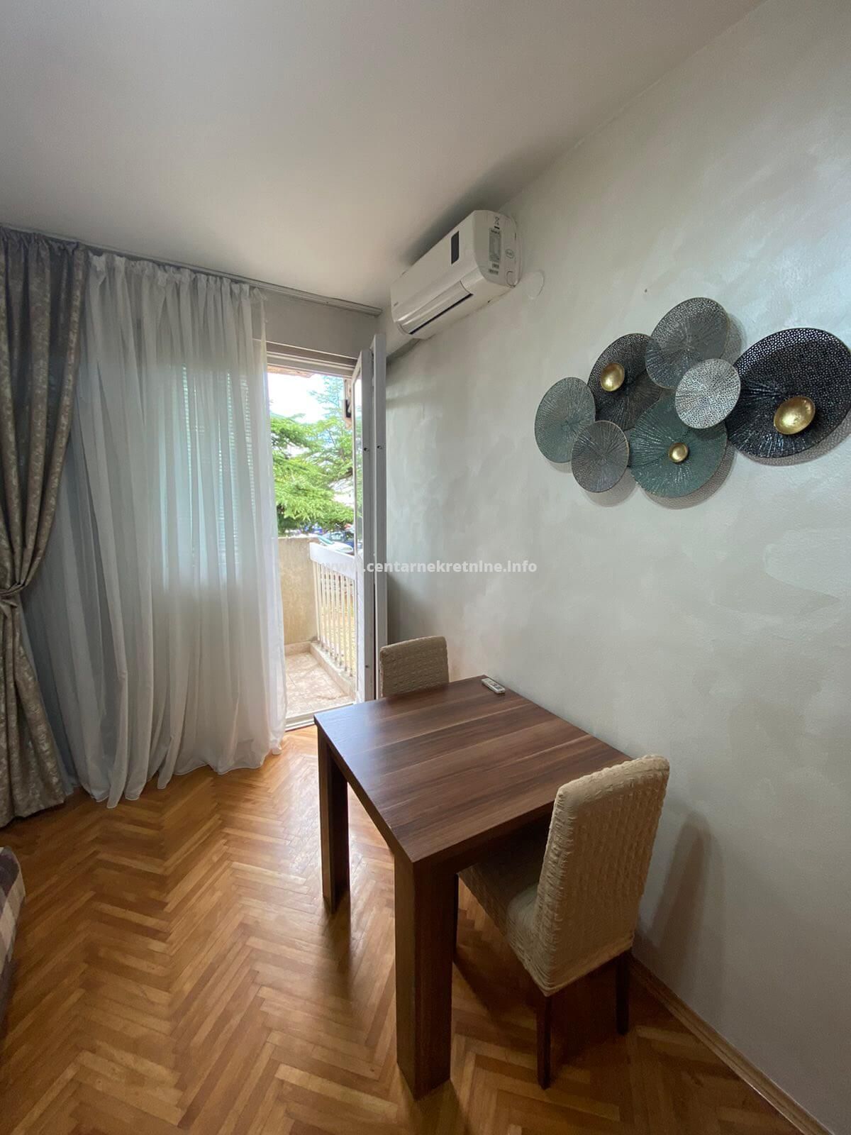 ID - 5713Izdajemo namještenu garsonjeru 25m2, na visokom prizemlju u soliteru kod Gintaša. Garsonjera će bit slobodna 01.07.2024.