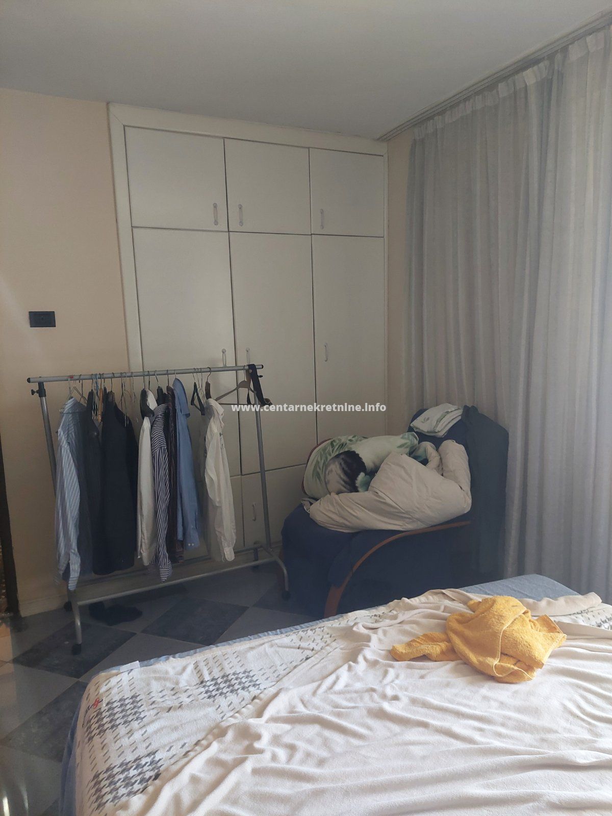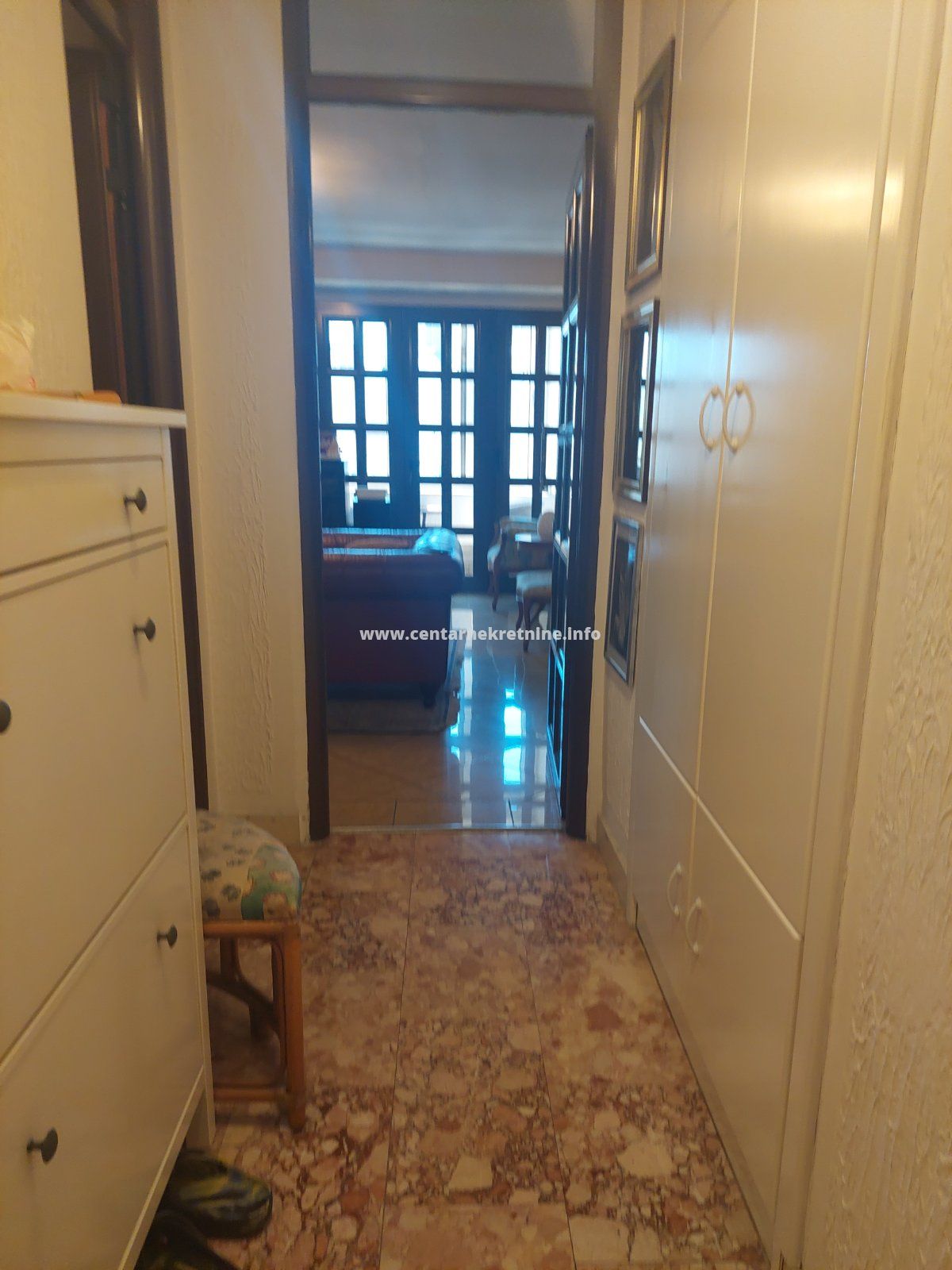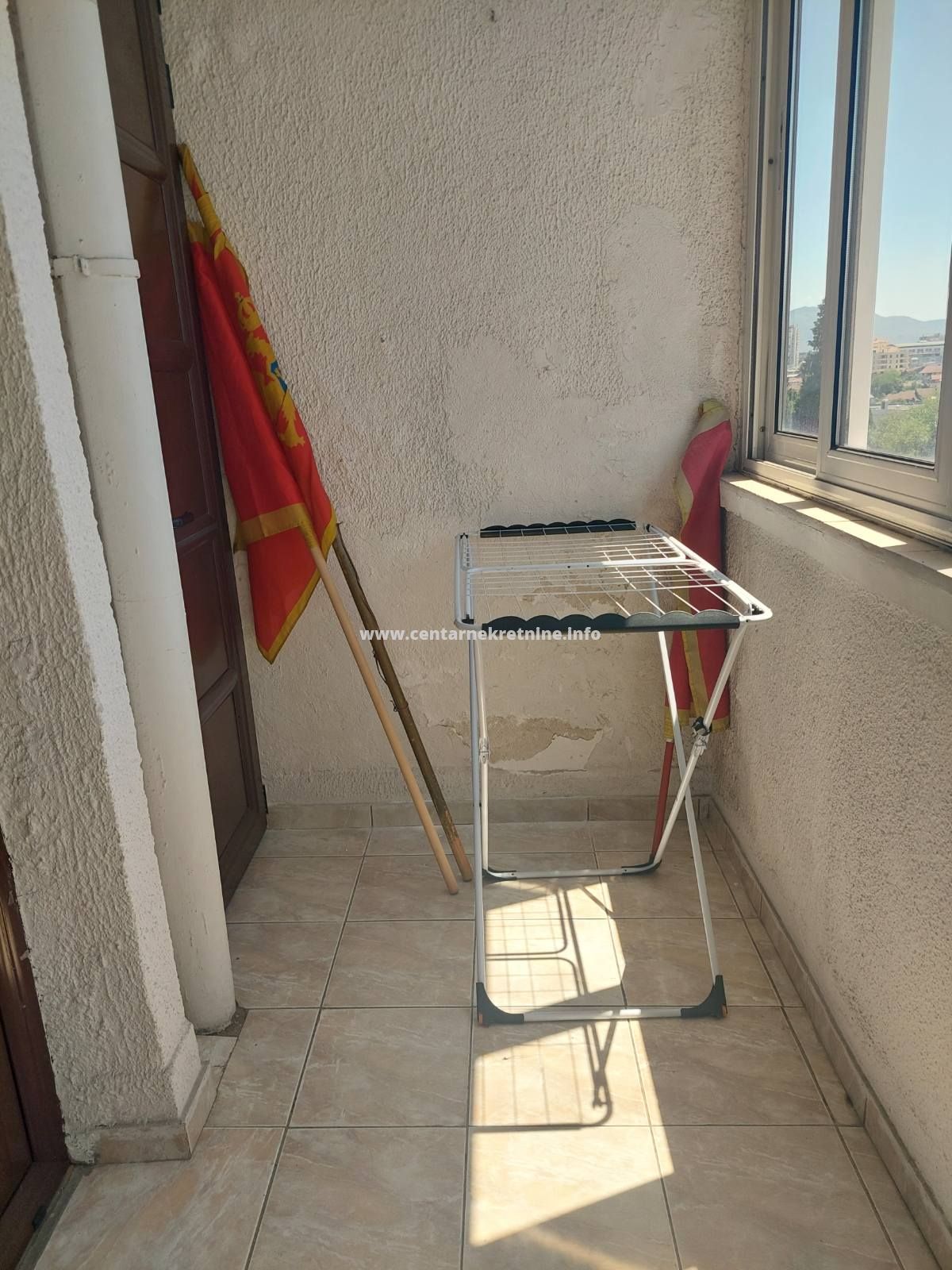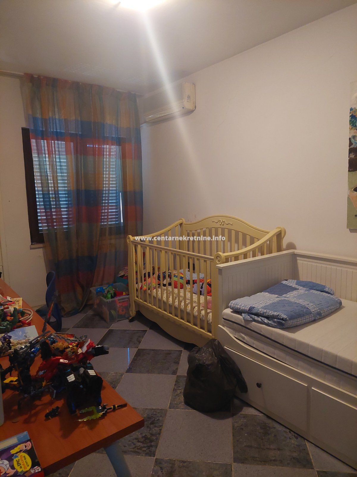 Prodaje se prostran trosoban stan na odlicnoj lokaciji, preko puta Sportskog centra Moraca. Stan je povrsine 107m2 (93m2+lođe), nalazi se na V spratu, koji je ujedno i poslednji. Sastoji se od hodnika, dnevne sobe, kuhinje, trpezarije, 3 spavace sobe, 2 kupatila i 2 zastakljene lođe. U dobrom je stanju i prodaje se namjesten.
