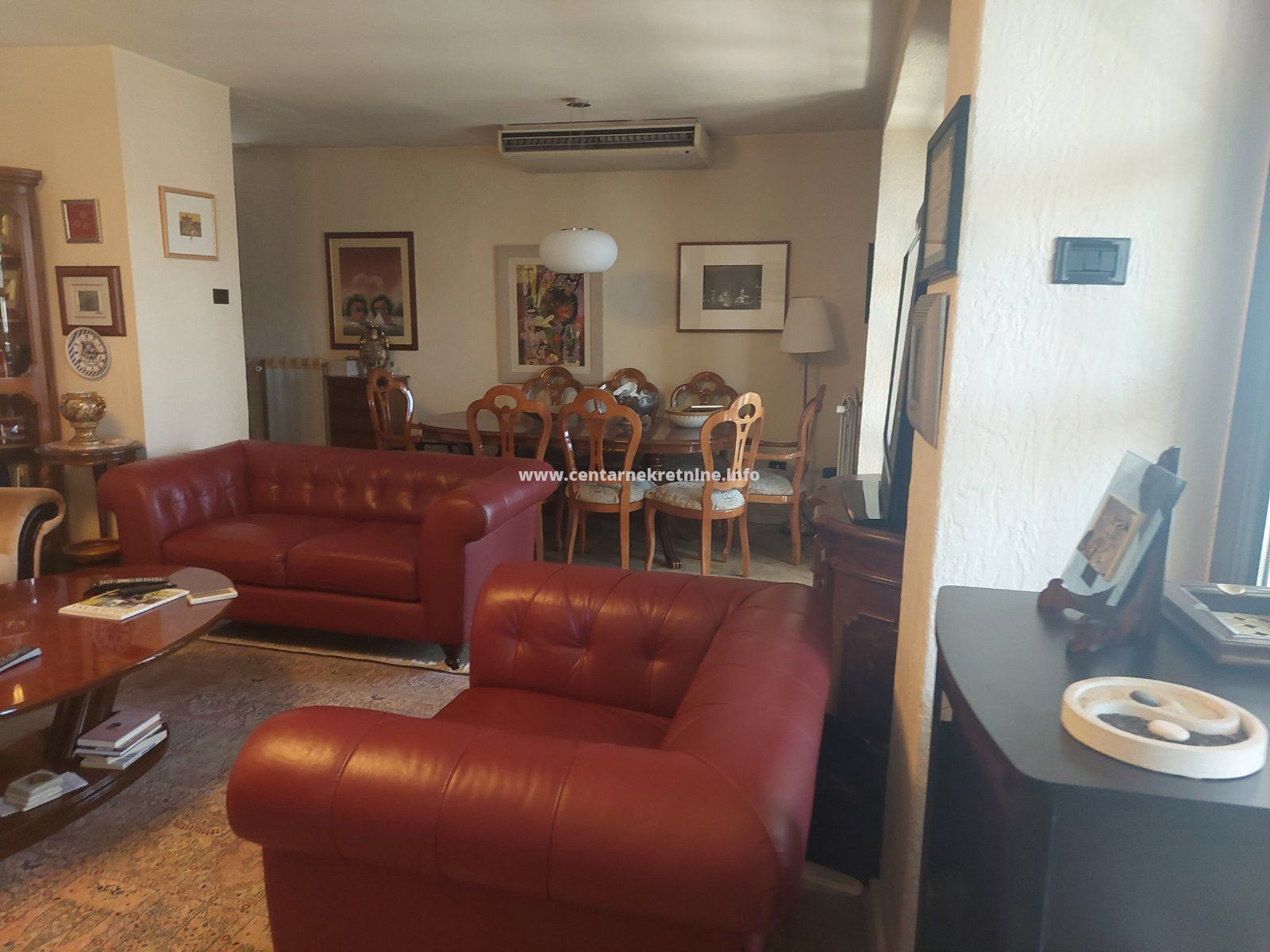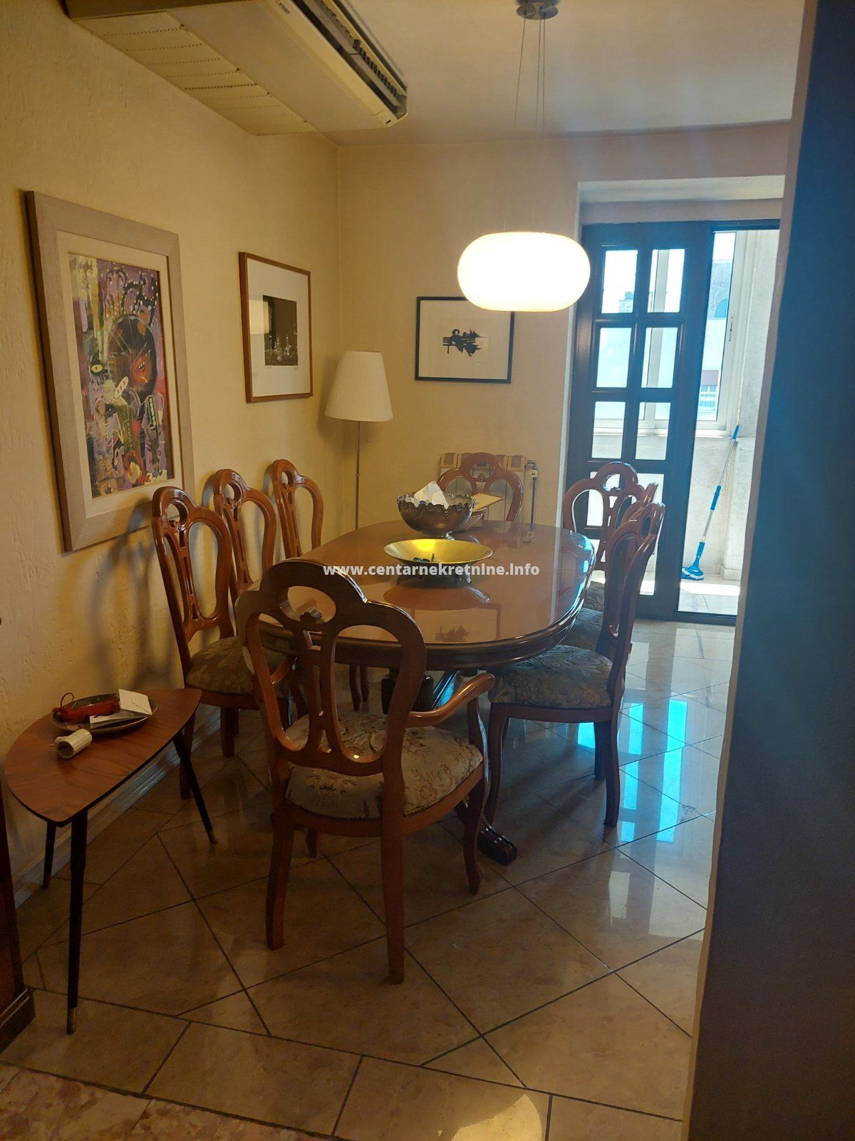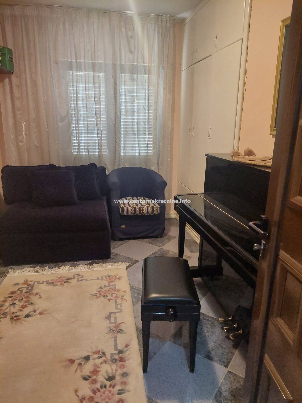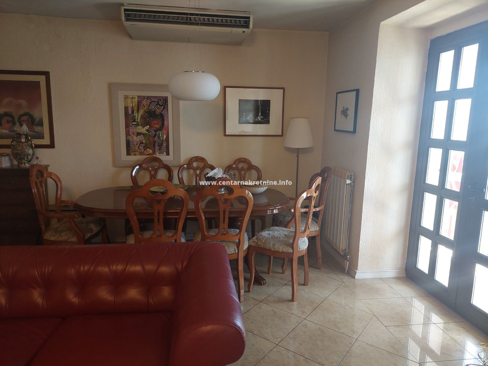Prodaje se prostran trosoban stan na odlicnoj lokaciji, preko puta Sportskog centra Moraca. Stan je povrsine 107m2 (93m2+lođe), nalazi se na V spratu, koji je ujedno i poslednji. Sastoji se od hodnika, dnevne sobe, kuhinje, trpezarije, 3 spavace sobe, 2 kupatila i 2 zastakljene lođe. U dobrom je stanju i prodaje se namjesten.
