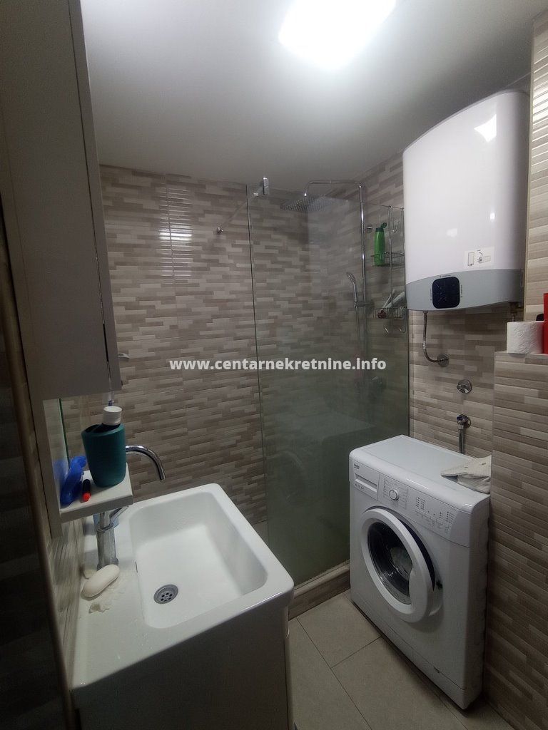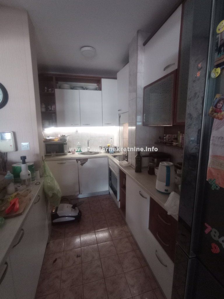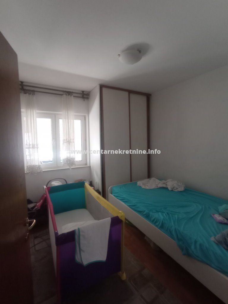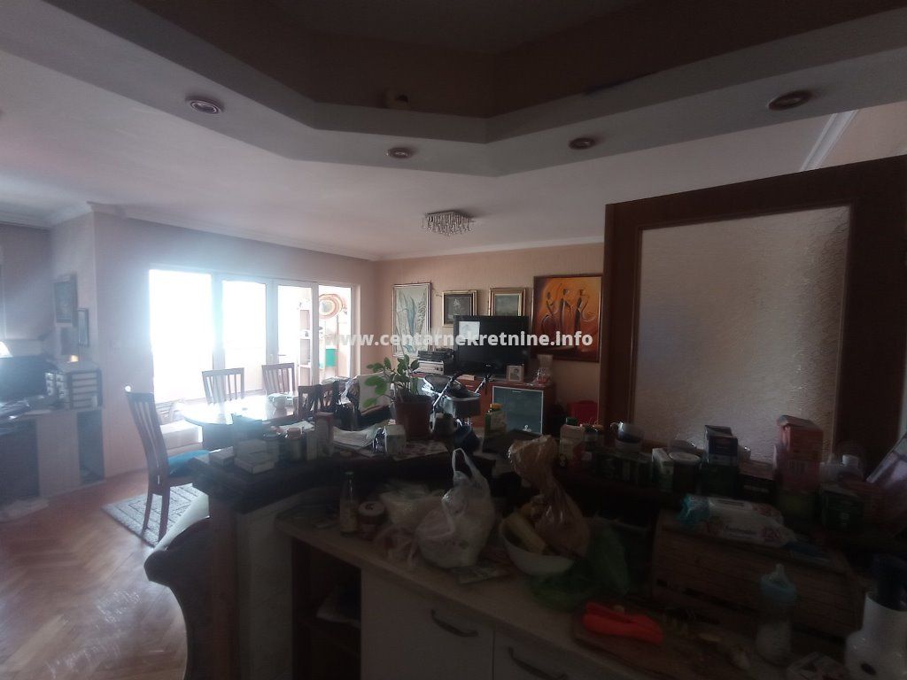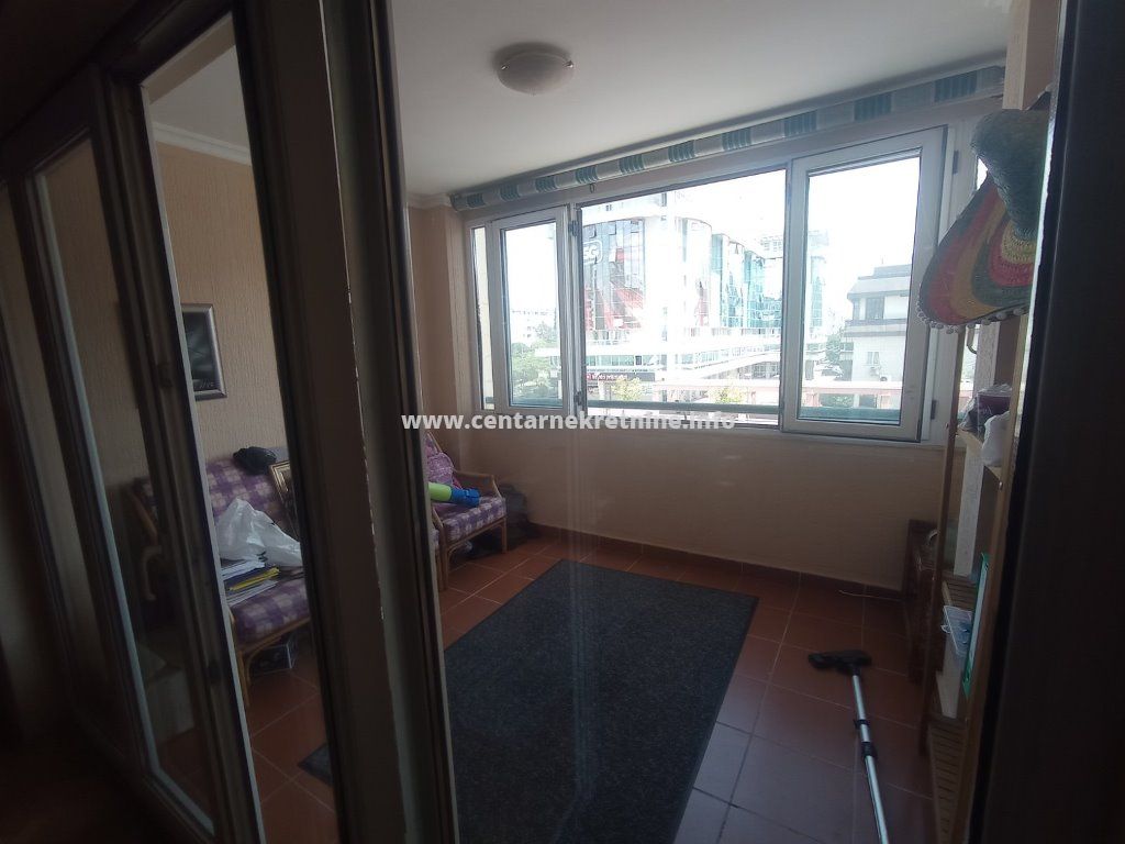 Prodaje se veoma prostran dvosoban stan na jednoj od najljepsih lokacija u gradu, na Rimskom trgu, povrsine 82m2, na II spratu, orijentisan istocno. Sastoji se od ulaznog hodnika, dnevne sobe, trpezarije, kuhinje, 2 spavace sobe, kupatila, toaleta i prostrane lođe koja gleda na Rimski trg.