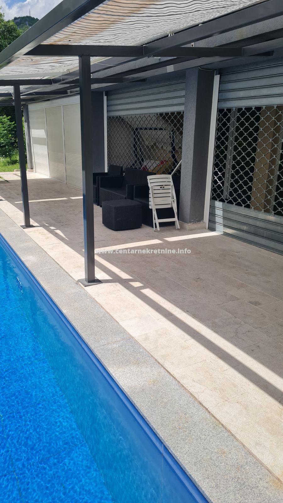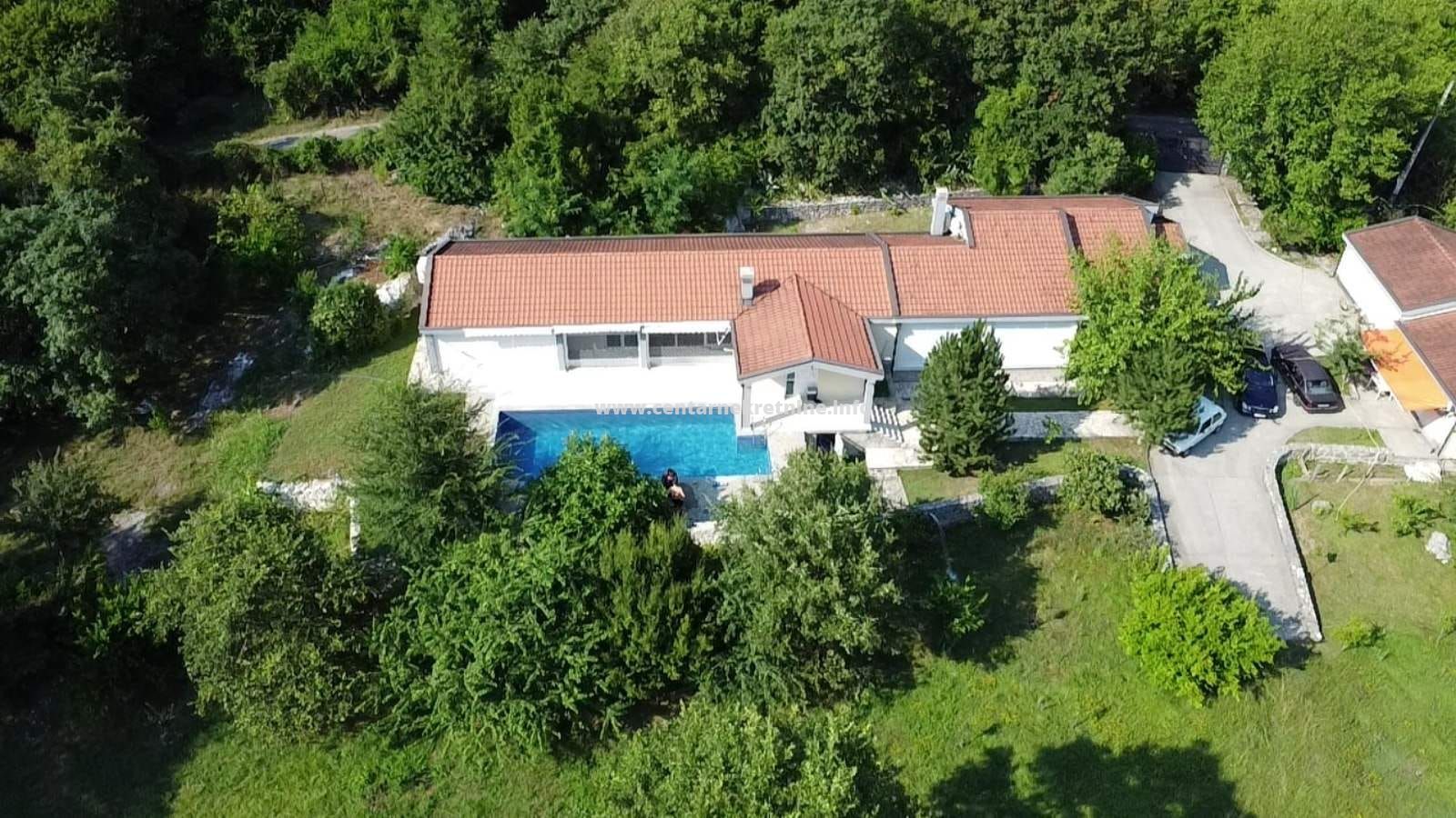 Izdaje se veoma prostrana, lijepa, moderna kuca novije gradnje u mjestu Orja Luka, 500m udaljeno od puta Danilovgrad-Niksic. Kuca je povrsine 300m2, nalazi se na placu od 5.000m2, ima 4 spavace sobe, 5 kupatila, gostinski toalet, veliku garazu, kao i pomocni objekat za cuvara. Ima dva ulaza, dvoriste je ograđeno i ima automatsku kapiju. Ugrađen je multi split sistem klimatizacije. Kuca je okruzena lijepim, uređenim dvoristem sa bazenom.