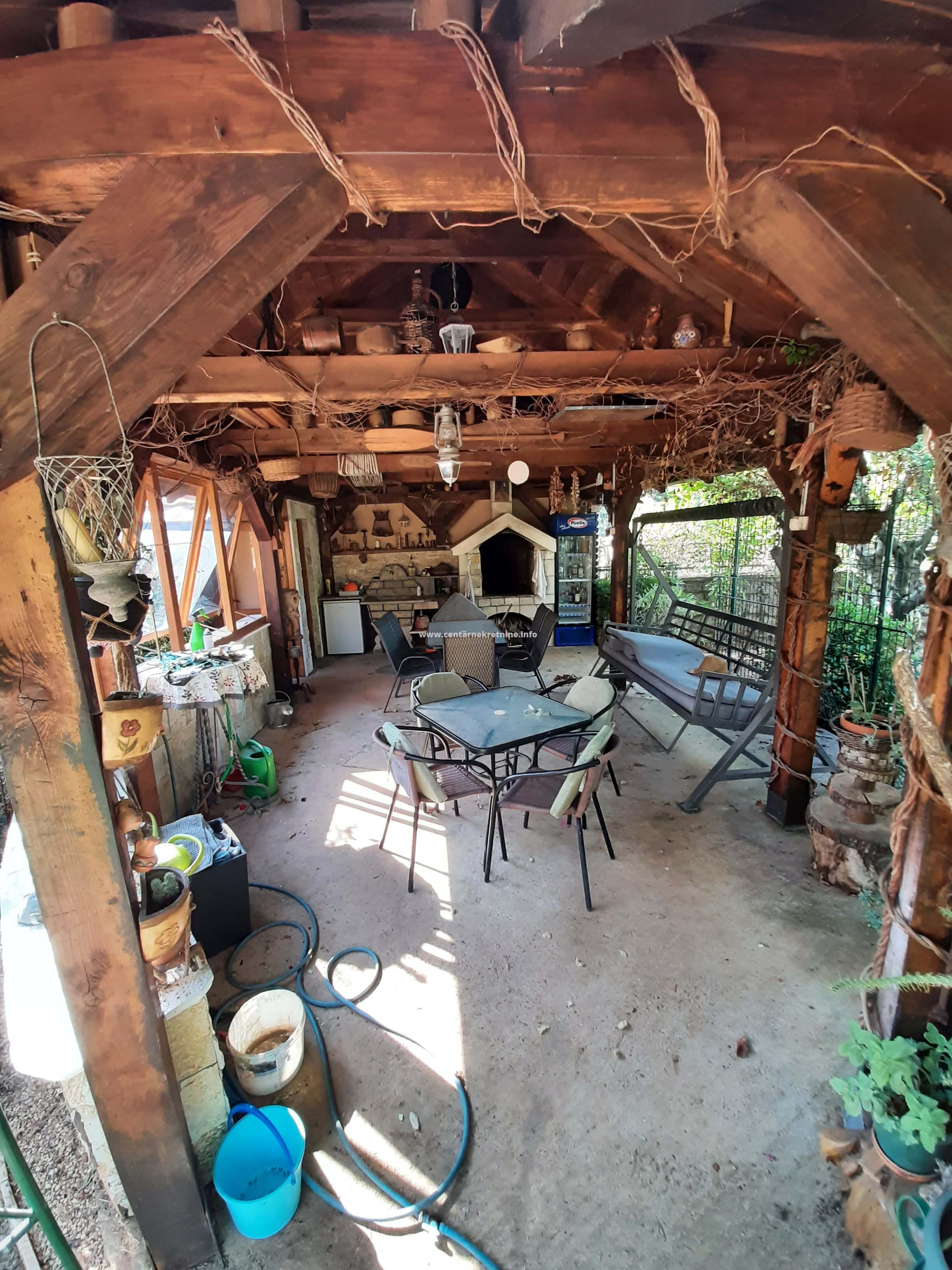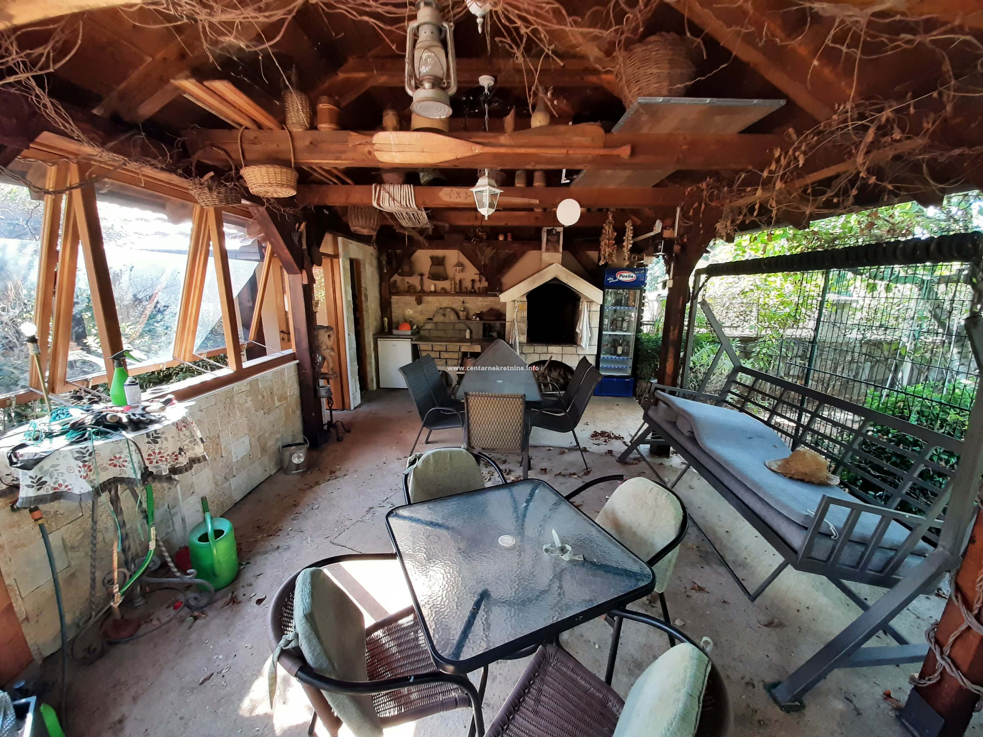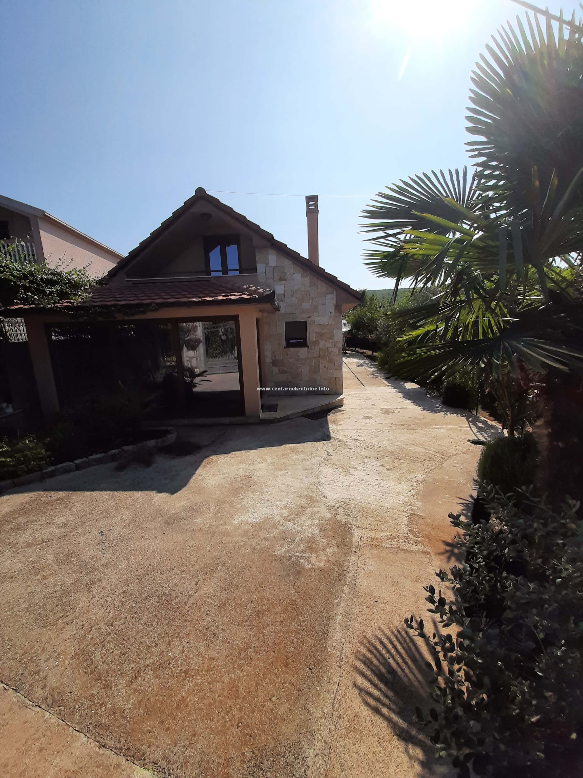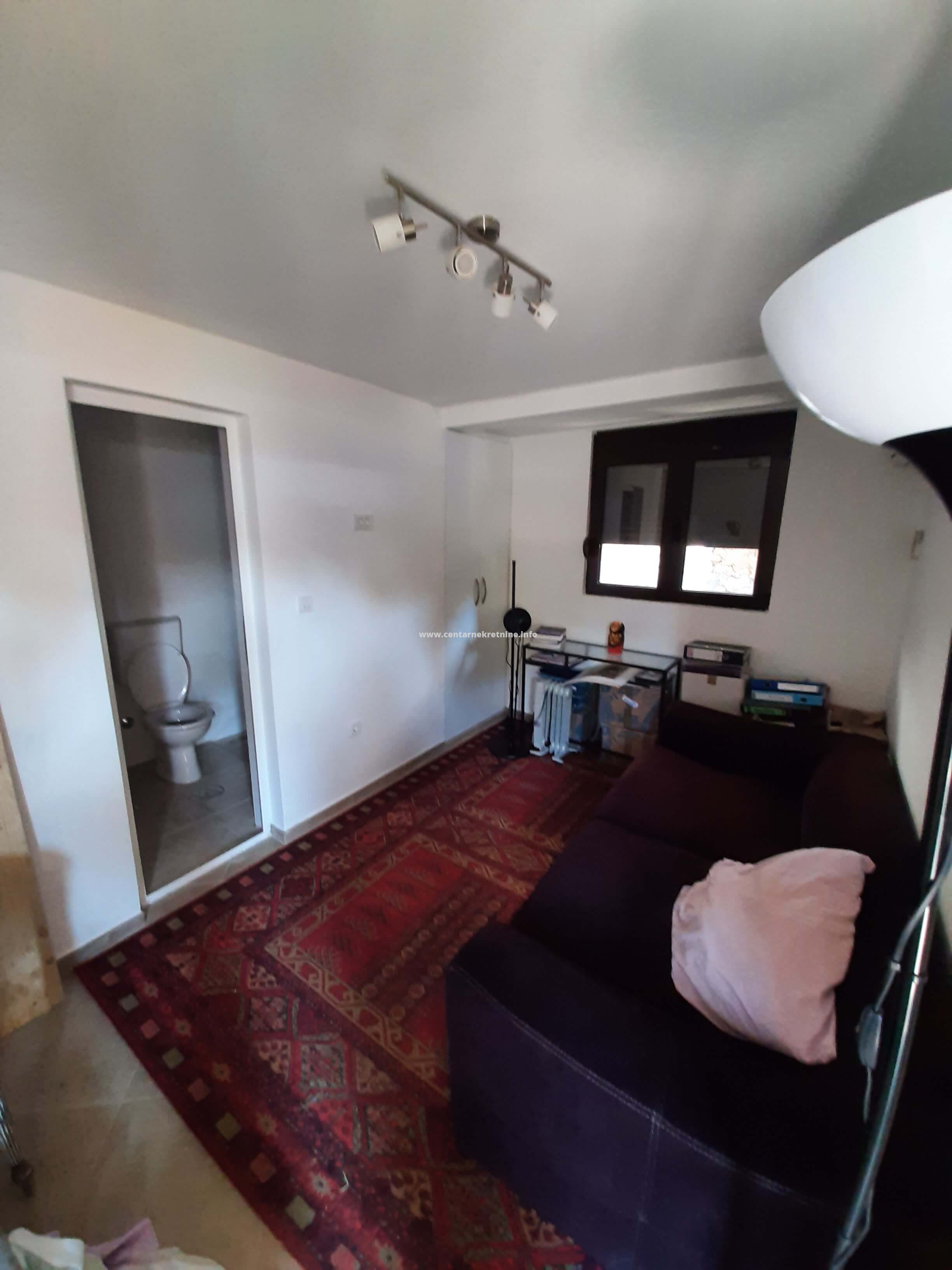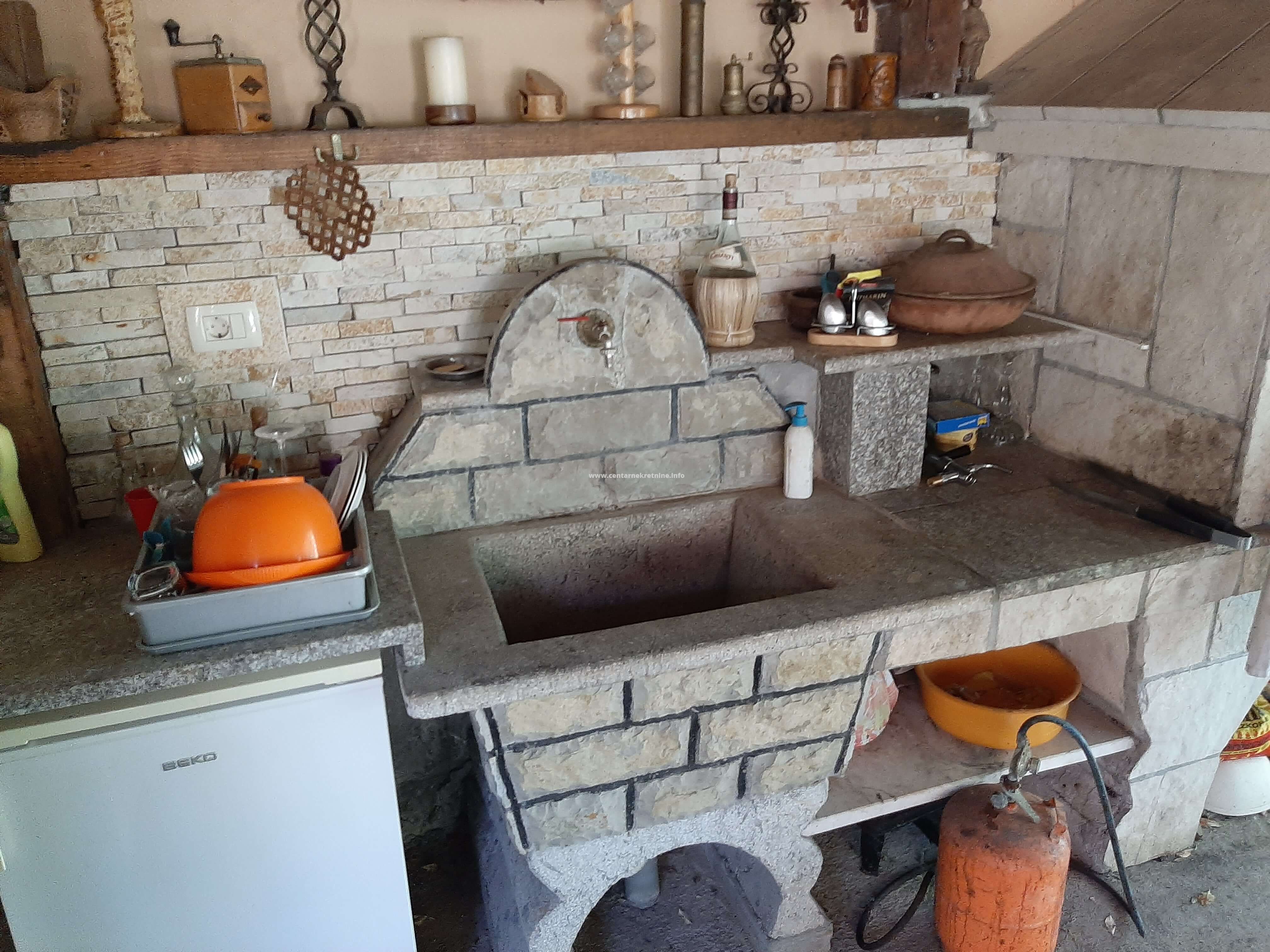 Izdaje se kuca u mjestu Mareza, povrsine 100m2, na placu od 940m2, ograđenim visokim kamenim zidom i kovanom ogradom. Plac je kultivisan, zasađen raznivrsnim biljkama, vockama, ukrasnim i dekorativnim biljkama i cvijecem. Kuca posjeduje veliki hodnik u obliku staklene terase, dnevniboravak, kuhinju, trpezariju, veseraj, ostavu, spavacu sobu sa francuskim lezajem i dva odvojena garderobera i kupatilom. U sklopu kuce nalazi se i soba sa kupatilom sa zasebnim ulazom. Na placu se nalazi djelimicno zastakljeni ljetnjikovac sa kuhinjom i taoletom velicine 34m2. U produzetku kuce je ostava/teretana 40m2. Ispred kapije parking za 2 vozila. Kuca je opremjena inverteskim klima uredjajem i gusanom kamin peci na drva. U uglu placa je izgrađen box za kucne ljubimce sa nadstresnicom.