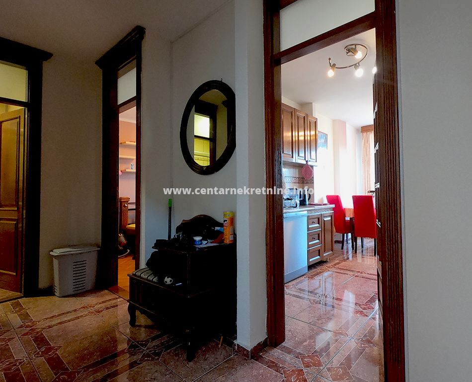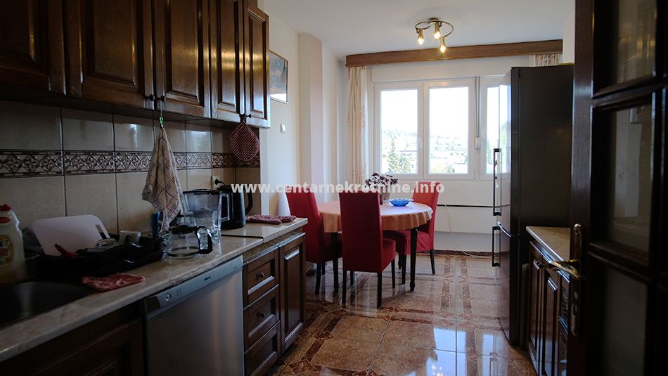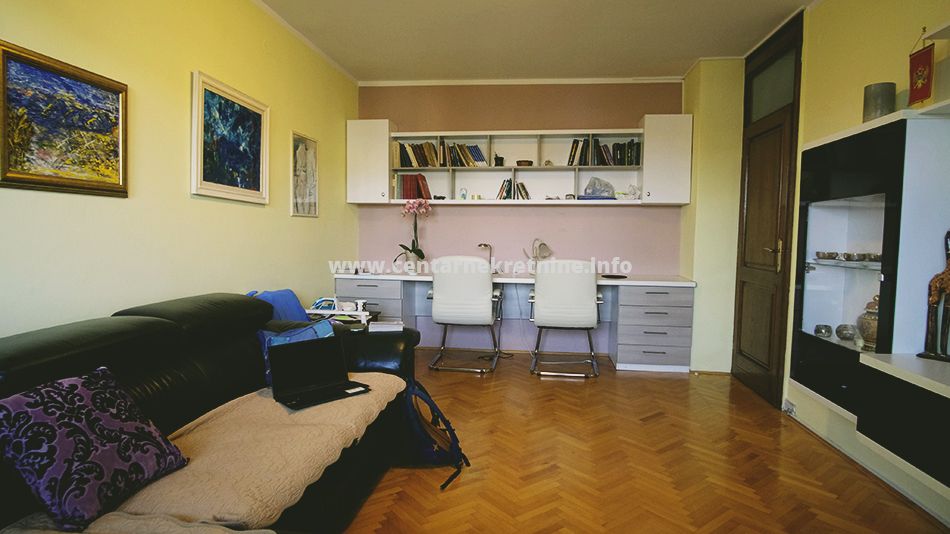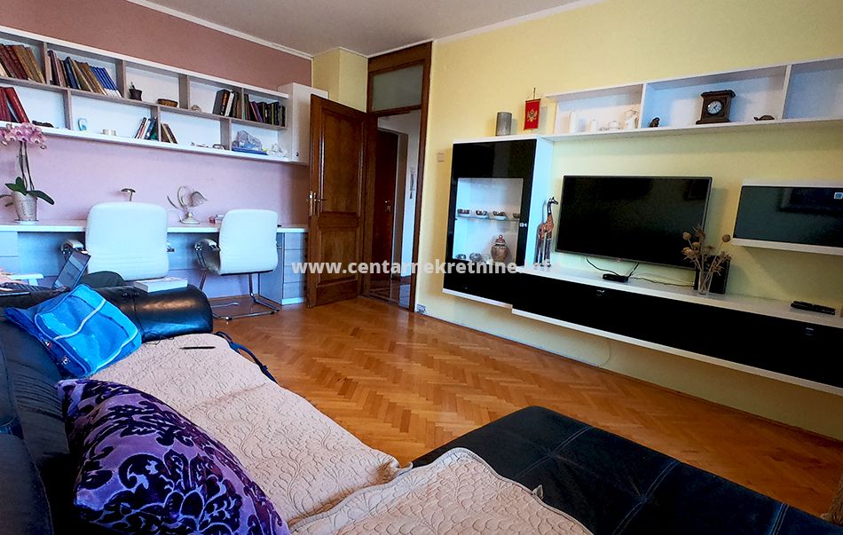 Izdaje se kompletno namjesten, veoma prostran jednosoban stan na odlicnoj lokaciji, na Bulevaru Svetog Petra Cetinjskog. Stan je povrsine 58m2, nalazi se na V spratu i kompletno je namjesten. Stan se sastoji od ulaznog hodnika, dnevne sobe, kuhinje sa trpezarijom, spavace sobe, kupatila i terase.