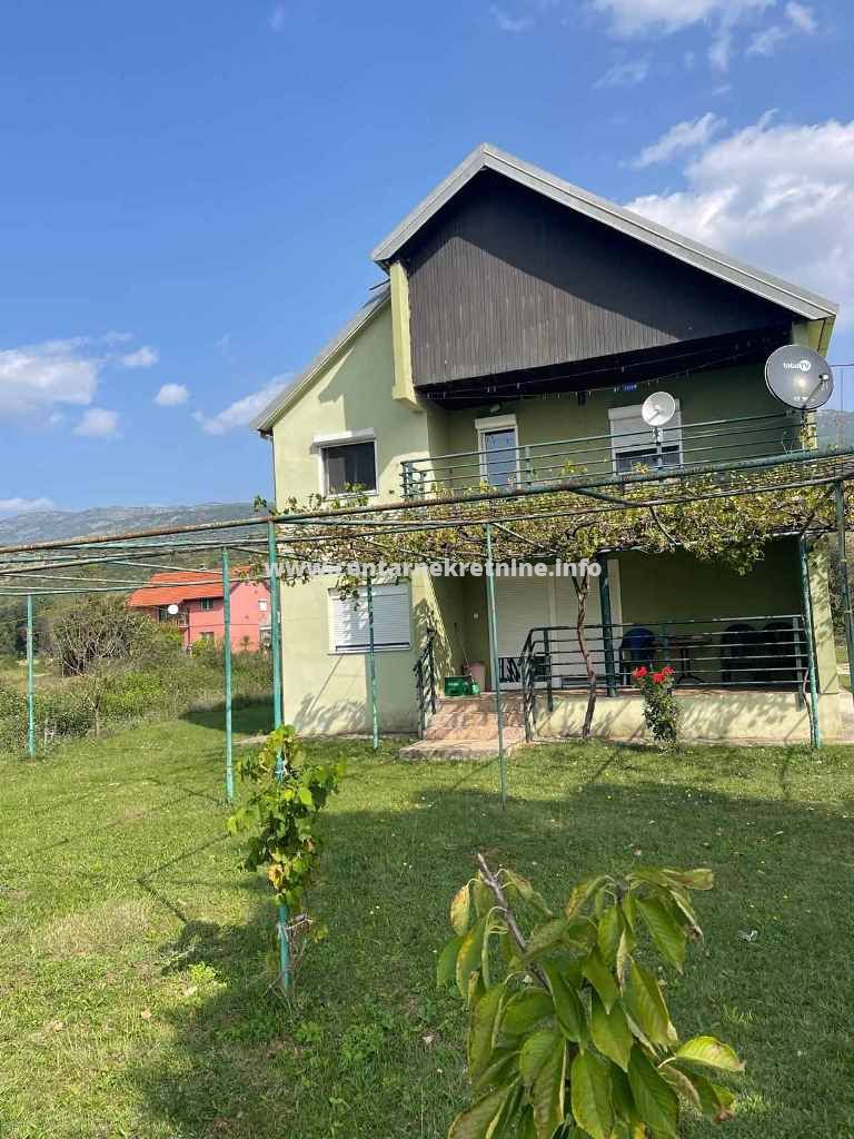 Na prodaju kuća 140m2 na placu 2.960m2 u naselju Jelenak, nedaleko od Danilovgrada. Kuća je na dva nivoa , prizemlje i sprat, a na svakom nivou je po jedan dvosoban stan od 70m2. Sprat je urađen prije 5g. Plac je ravan i pogodan za bavljenje poljoprivredom.Na placu je i garaža , kao i pomoćni objekat.